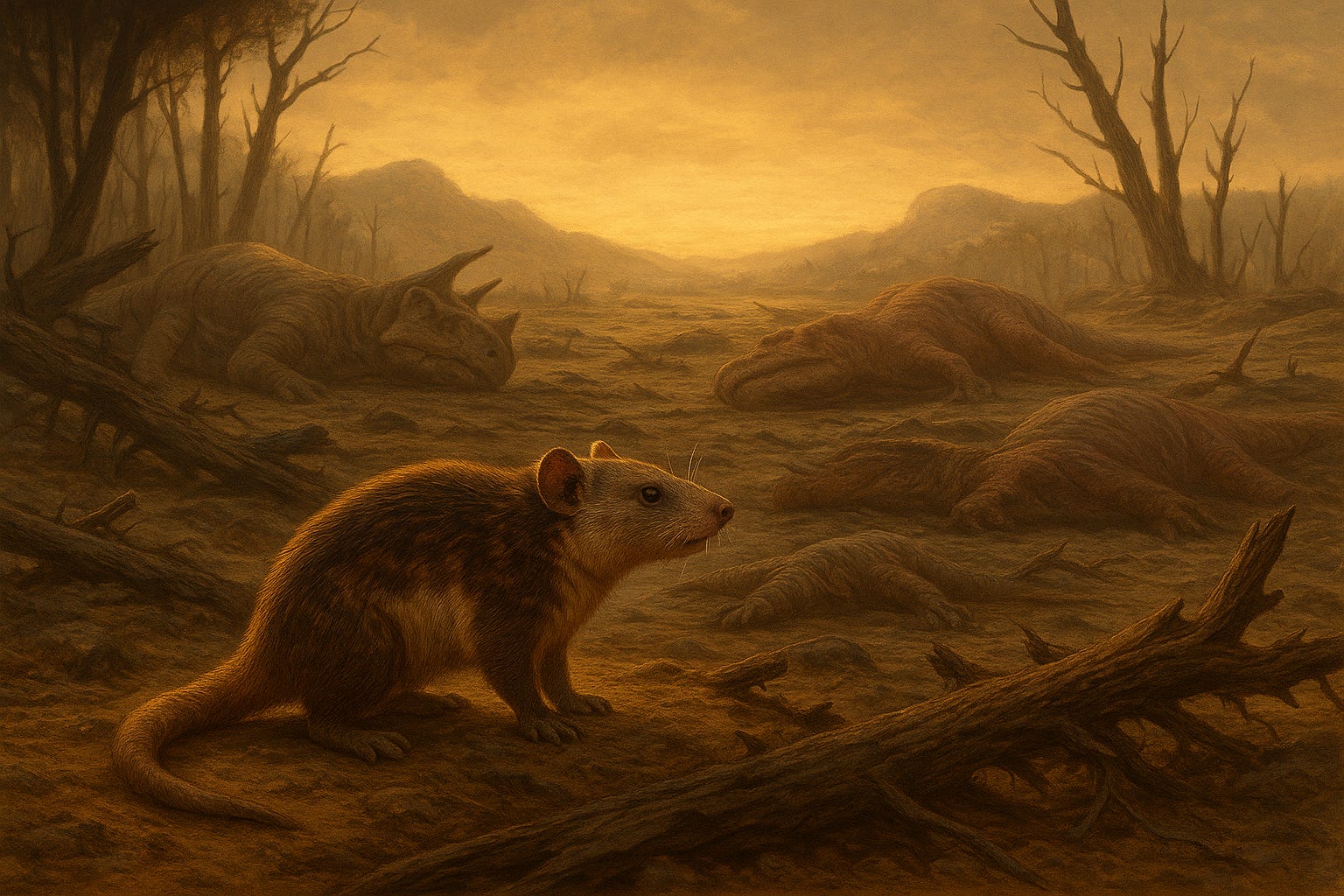 Let’s imagine that somewhere towards the end of the Cretaceous a tiny marsupial called Didelphodon, noticing that the great booming sound of giant feet has disappeared, pokes its furry snout out of the hole where it has hidden from the Velociraptors, sees that the age of dinosaurs is coming to an end and wonders what will take their place. I know how it feels.